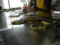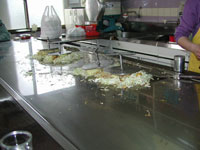 広島風、初めての人はヘラの使い方とかも丁寧に教えてくれます。