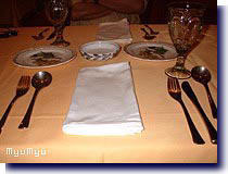 とにかく、氷もでかい塊を袋に入れてごちごち割ってたり、テーブルセッティングも料理に
