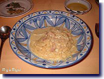 本日のパスタはカルボナーラ。特に好き嫌いのないσ(^^)にとっては、一番のおすすめを