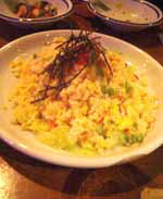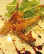 でもこんちゃんはジモピーなのに来た事なくて、とっても来てみたかったお店なのだそうです。 広島市内から行くと広島インター入り口のマクドナルドのところで側道に入り、 緩い下り坂を降りて交差点を右折、道路の下をくぐると目の前左側です。 まずは飲み物・・・・と、いつもなら書くとこなのですが 携帯電話で写真を撮っているとお店の人がホムペのURL聞いて下さったので 今回は特別2枚のページ(料理編)と (飲み物&デザート編) 作って見ました。 サラダは三日月サラダ、ペッパ−の香りと牛タンの小さな角切りがアクセントです。 シーフードパスタバジルソース、細麺のアルデンテ具合は絶妙!きたらすぐ食べる事おすすめします。 海老チャーハンに続き、海老香草オイル焼き・・・とうぜん、海老姫こんちゃんのご所望(笑) スズキのソテー、付け合せの野菜やきのこたっぷり、スズキは皮がぱりっと香ばしく仕上がってます。 肉より魚好き少女、くみちゃんの皮も横取りしてたべちゃぃました。 本日のメインイベントとなってしまった感のある「かえるから揚げ」、とりのから揚げのようです。 おいしいです。ほんとに・・・。でも、σ(^^)は二本しか食べられませんでした。 なぜかとゆーと・・・σ(^^)子供の頃、この原材料を田んぼでたくさん捕まえては売り飛ばしてて、 バケツの中でこっち見つめてた潤んだひとみを想い出して(おひっ。その頃はゆがいて食べてました。 締めの料理は牛タン、ちょっとスモークドタンのような歯ごたえを残した仕上げで、シチュ〜風の趣。 昨日は東京銀座でとろとろのタンシチューたべたのですが、連続してタンの2通りの食べ方を堪能し 幸せな3日間の締めくくりとなりました。 ------------------------------------------------------------------------------------ お店の人が見てくれるかも知れないとゆー事で、がんばってコメントしちゃいました。 メニュー名とか中身で違ってるとこがあったら、BBSでおしえてくださいね〜(^^)/ |