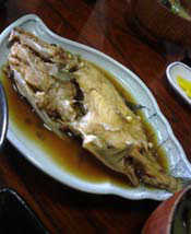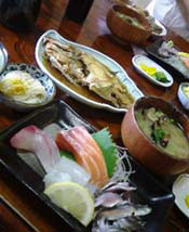 なかなか和食ランチのお店見つからないのですが今日は思い切ってとびこみの冒険 お店の前を夜に通るとテントに明かりがついていて、ちょっと気になっていたお店です。 お店の前は魚屋さん、車は何台か駐車していましたが、 表には店番のおじさんがいるだけ。 門構えもちょっと老舗っぽい。一歩お店に足踏み入れると・・・たくさんの人。 カウンタにはズワイガニが何杯も山盛りに 和食にありがちのちょっと高い価格帯のお店かとおもいましたが、 なんと780円の日替わり定食は煮付け(当日はカワハギ煮付けかあらだき) 刺身4種盛・そうめん小鉢・しじみの味噌汁・ご飯・香の物。 さしみには広島名物こいわしの刺身もあります。 煮付けはまるまる尾頭つき一匹づけ、あら炊きもボリュームたっぷり。 そういや、初めてみゆみゆと一緒にご飯食べた時も和食でこんな感じだったなぁ・・・ |