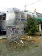 今回は靴を脱いで、トレーラーハウスの中のテーブルへ・・・・。並んでのランチはちょっと違う感覚(笑)