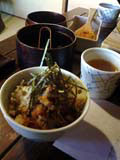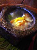 穴子飯で有名な宮島口「うえの」の2階にある完全予約制のお店。 昼・夜ともメニューはコースのみ。3500円から楽しめます。 入り口は「うえの」と兼用。わかりにくく、また「うえの」はたいてい立て込んでいるので 黙っていると案内してもらえないかもしれません。最初は積極性が必要(笑) 一階の賑わいと離れ、2階「他人吉」に上がると、閑静なおちついた和の世界です。 食前酒・前菜三種盛・石焼・造り・煮物・焼物そして名物穴子飯・デザート。 穴子飯は2人分陶器の釜で香ばしく炊いてあります。 σ(^^)はもっと穴子をふんだんに使ってある料理を期待したのですが かみさんによると、前回はどの料理にもアナゴが使ってあり、 穴子嫌いな人はちょっとどーかなと想ったそうです。 高いコースだと穴子の刺身などもたべられるのかもしれません。 裏に「蔵」という休息所もあり、まったりするにはよさそう。 |