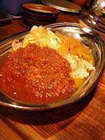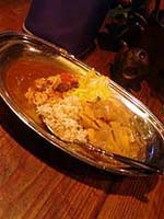 佐吉が引越しするとあまりこれなくなるかもとゆー事で尾道たべあるき。 最初はパスタのおいしかった店、カサリンガに行ったのですが、 なんだかお店の雰囲気変わっている上に、営業していませんでした。 とことこ歩いてみーちゃんに電話で教えてもらったタイ料理のお店へ。 なかなか、いー雰囲気・・・一緒に歩いてるのが佐吉ぢゃなかったらなあ(爆) 3種類のカレーの中から2種類を選べるWカレーを頼んでみました。 ほんとのタイ料理食べたことないのでよくわかりませんが、 本格的なタイカレーだとおもいました。 酸味と辛味と香辛料の香りが鮮烈で、おいしかったです。 |