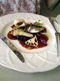 川のほとり。河岸の公園。市内だけどひっそりという感じのお店 5台と少しですが駐車場があるのもうれしい。 まずサラダとスープ。とりたてて特別な素材ではありませんが、 ドレッシング、盛り付け、バランスが良く洗練されています。 おすすめランチは、これからが旬の魚・いさきとヤリイカが素材。 香草パン粉焼き・ポルト酒のソースがメインです。揚げたレンコンがアクセント パスタランチは、ブロッコリーと生ハム・ナスのぺペロンチーノ。 バゲット・・・たぶん、おかわりできそうなんだけど・・・、 カロリー制限中なのでチャレンジしませんでした(笑) 最後は果物・デザート盛り合わせと飲み物 特にチーズケーキは小さいのですが、濃厚な味わいでおいしかった。 エントランスとテラスは、綺麗な花が一杯。明るい青空と新緑。八重桜と川岸。 お店の中はしっとり落ち着いていて、とても満足のらんちでした。 |