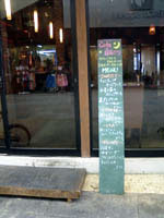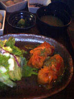 行く予定だった川沿いのイタリア料理店がお休み んぢゃ・・と、地下にあったサンドイッチのお店に行ったら・・・・ お店はなくなって、一階のカフェに(汗) 仕事でも使うデジタルカメラ物色するため、時間がなかったので ひさびさ冒険、飛び込みで創作料理??和食?のお店に入ってみました。 実は入るまでは、今風のイタリア料理店かと思ってたのですが・・・ パスタランチ、肉のランチ・魚のらんちがありました。 肉はロールキャベツにトマトソース・・・ソースは明らかにイタリア料理店風 魚は白身魚だったもよう。 白いご飯にはとろろをかけて、やはりどっしりお腹にこたえて素敵でした。 |
