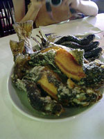 釣った虹鱒を買い取り、料理してもらって食べます。