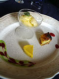 ひさびさsakanayaでランチです きょーは次年度入社予定の新卒レディの方がお見えになったので いちお、面談とゆーことで脱走〜(笑) 佐吉も・・・ついでに・・・・誘いました(爆) 駐車場はすんなり入れましたが 店内やはり待ち行列。あいかわらず一番人気のお店です デザートの前に、一皿でてきました ・ 盛り付けの前菜は3人3皿、全部内容が違います パスタ2種・ピザ一枚をとりわけてぱくり パンはガーリックトーストとバタートースト はじめから3きれづつ持ってきてくれました 以前、何度もおかわりした事をお店の人、覚えてくれていたようです(^^;) デザートも3人3皿、全部内容が違います おなか一杯 至福の時間をレモングラスのハーブティでしめました。 |